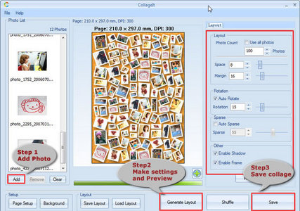 Create collection in a intelligent technique; Press “Generate Preview” press button, CollageIt may create photo collection immediately good additional photos and details without guide book adjusting.